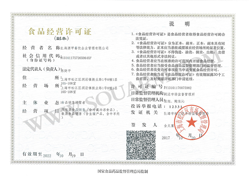 食品經營許可證